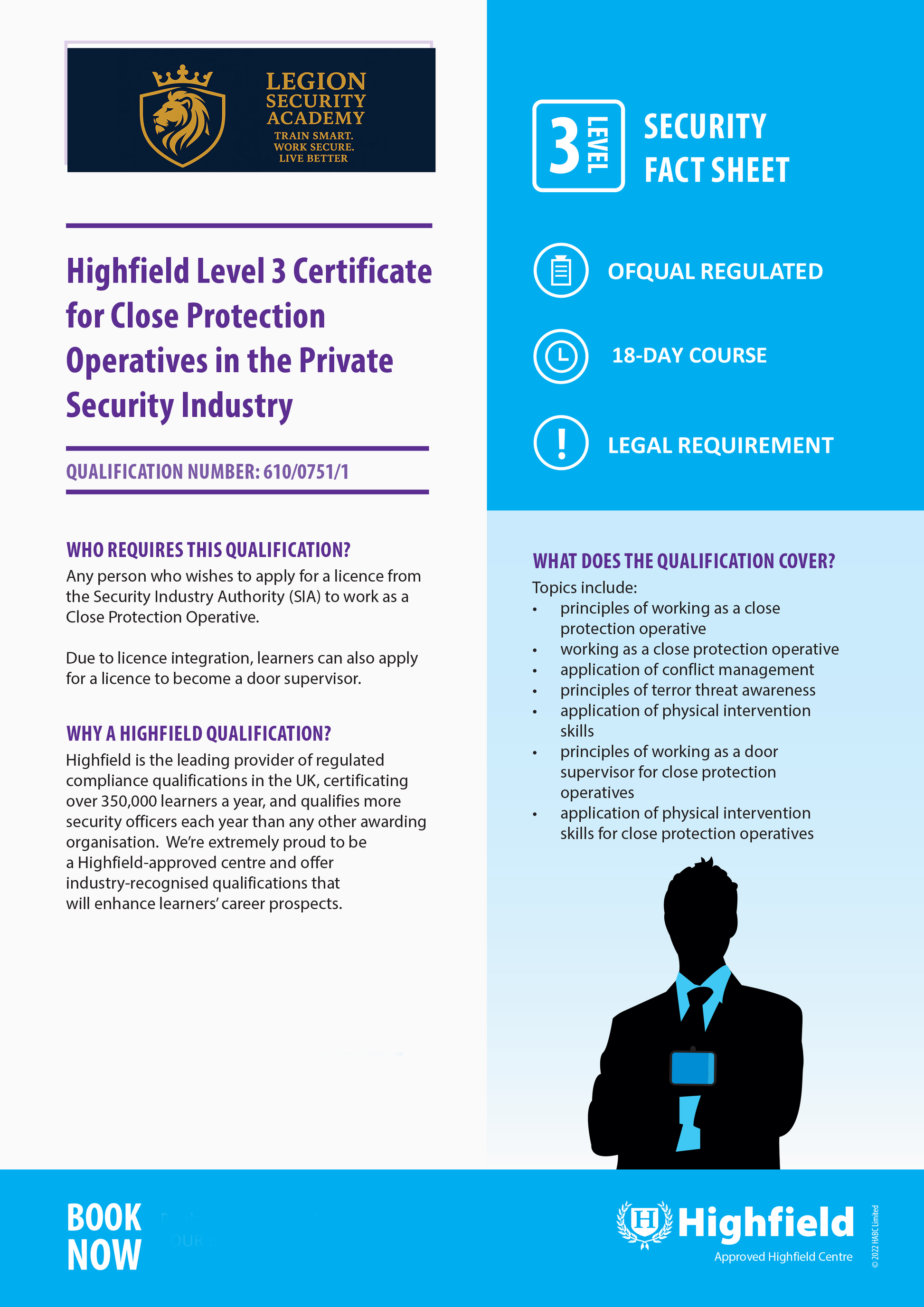 This qualification is designed for learners who already hold an SIA Close Protection licence and need to update their knowledge and practical skills to meet the latest industry requirements. Developed by Highfield, it ensures you remain fully aligned with the current SIA standards.